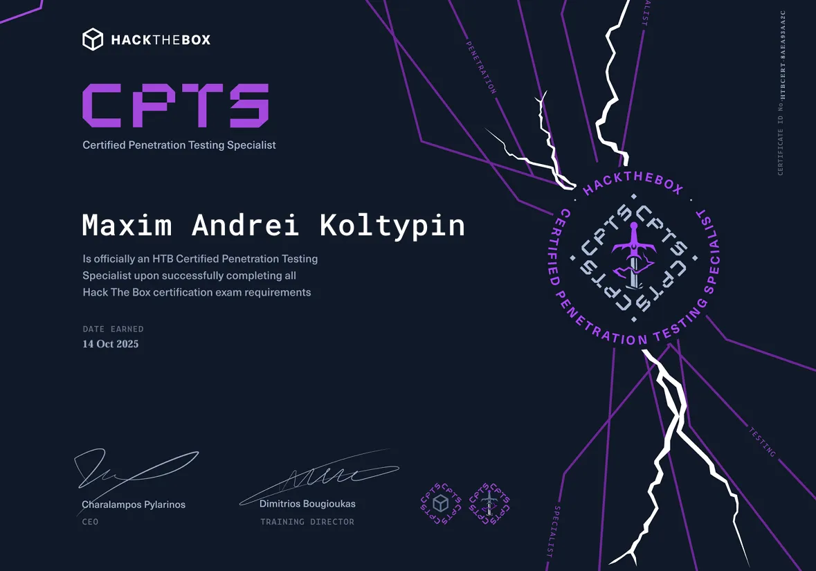 I am grateful to HackTheBox for this opportunity and can’t wait to test my skills and knowledge at their next exams.