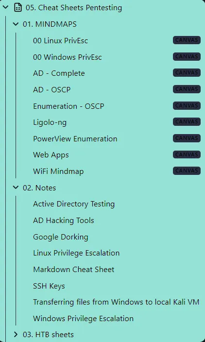 Section titled “Note Taking”For me this was actually pretty straightforward as I had simply done all the modules and wrote notes for every single module. My notes would consist of rough notes that consisted of 70-80% of the course material that I deemed important over, and more detailed notes that I structured in folders using obsidian.