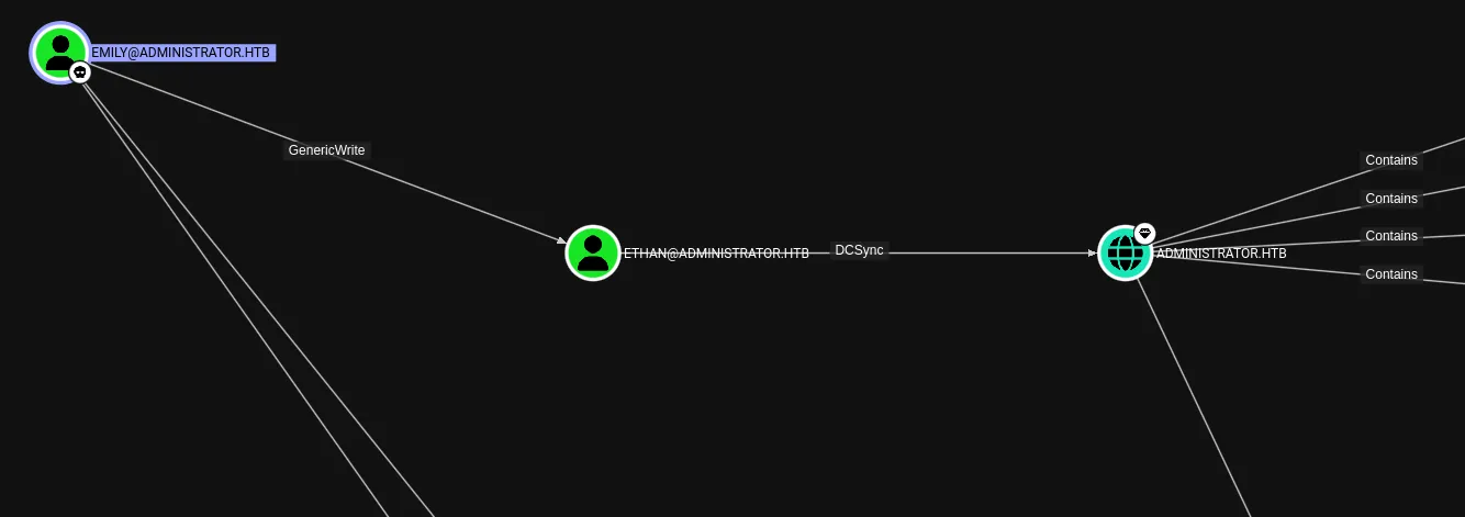 Section titled “GenericWrite”I didn’t hold any interesting privs but I still checked my ACL’s in bloodhound where I found that I had GenericWrite privs over Ethan: