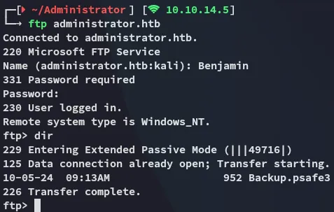 Section titled “21/TCP - FTP”I logged in with the creds for Benjamin into ftp: