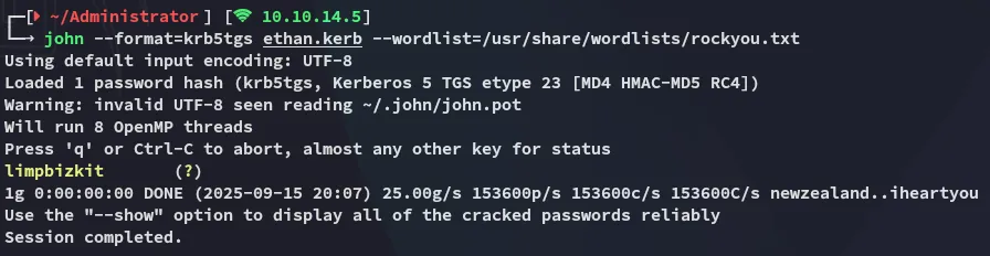 I can use a targeted kerberoast to get the krb5tgs hash for Ethan.