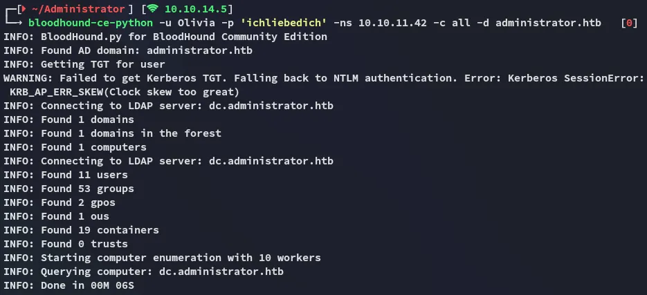 Section titled “BloodHound”In order to map the domain I used bloodhound-ce-python: