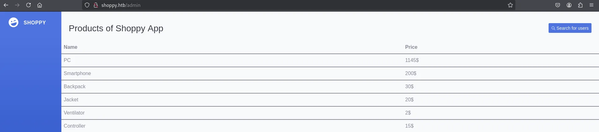 PORT STATE SERVICE REASON VERSION22/tcp open ssh syn-ack OpenSSH 8.4p1 Debian 5+deb11u1 (protocol 2.0)80/tcp open http syn-ack nginx 1.23.1|_http-title: Shoppy Wait Page|_http-server-header: nginx/1.23.1|_http-favicon: Unknown favicon MD5: D5F0A0ADD0BFBB2BC51607F78ECE2F57| http-methods:|_ Supported Methods: GET HEAD POST OPTIONS9093/tcp open http syn-ack Golang net/http server|_http-trane-info: Problem with XML parsing of /evox/about| http-methods:|_ Supported Methods: GET HEAD POST OPTIONS|_http-favicon: Unknown favicon MD5: DEAA4EF1DE78FC2D7744B12A667FA28C|_http-title: Site doesnt have a title (text/plain; version=0.0.4; charset=utf-8).| fingerprint-strings:| GenericLines:| HTTP/1.1 400 Bad Request| Content-Type: text/plain; charset=utf-8| Connection: close| Request| GetRequest:| HTTP/1.0 200 OK| Content-Type: text/plain; version=0.0.4; charset=utf-8| Date: Thu, 25 Sep 2025 08:35:12 GMT80/TCP - HTTP