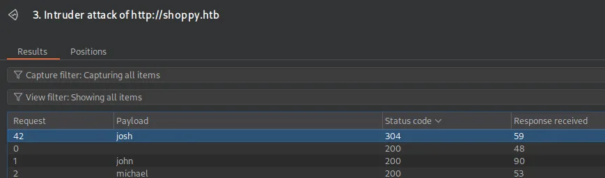 Section titled “Burpsuite Intruder”I then analyzed the request and found that if the user exists, then the response would be a 304: