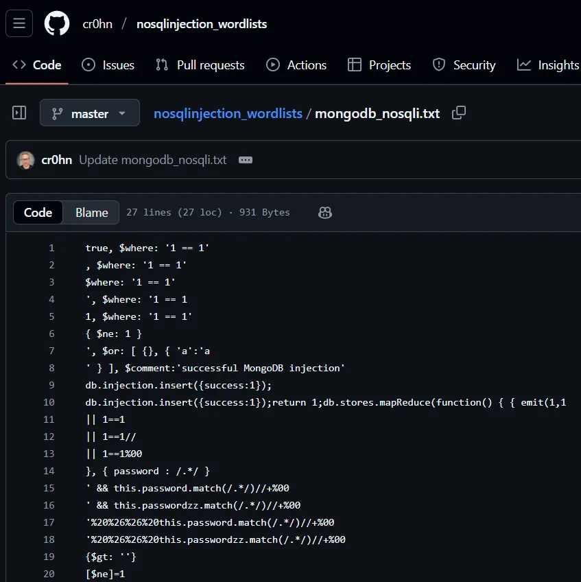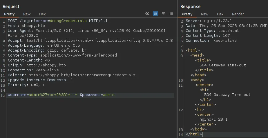 Section titled “NoSQL Injection”Since the ' was messing up the query and giving a timeout response it’s still worth looking into NoSQL Injection in case the server is running something like MongoDB.