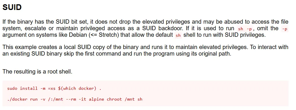 Section titled “Docker”This is an amazing position to be in since we can easily exploit the binary using GTFObins: