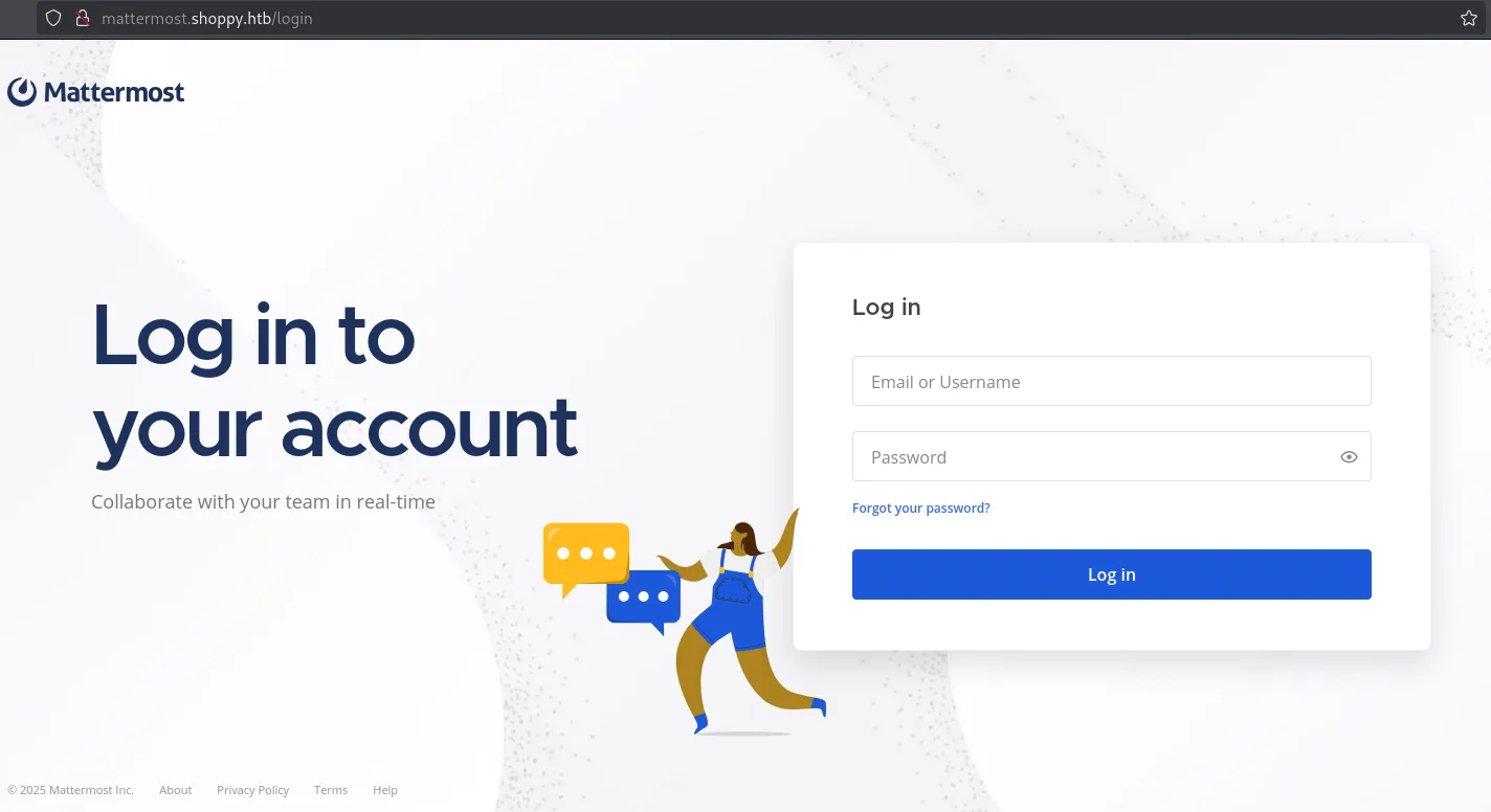 Section titled “mattermost”After adding the domain to my /etc/hosts I went ahead and visited the website: