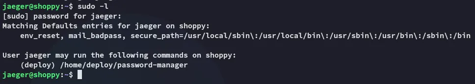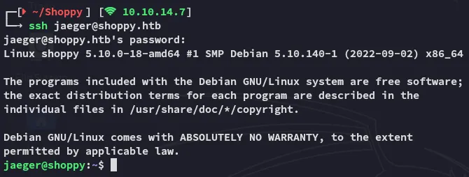 Section titled “SSH as jaeger”Using the found creds we get access to the target: